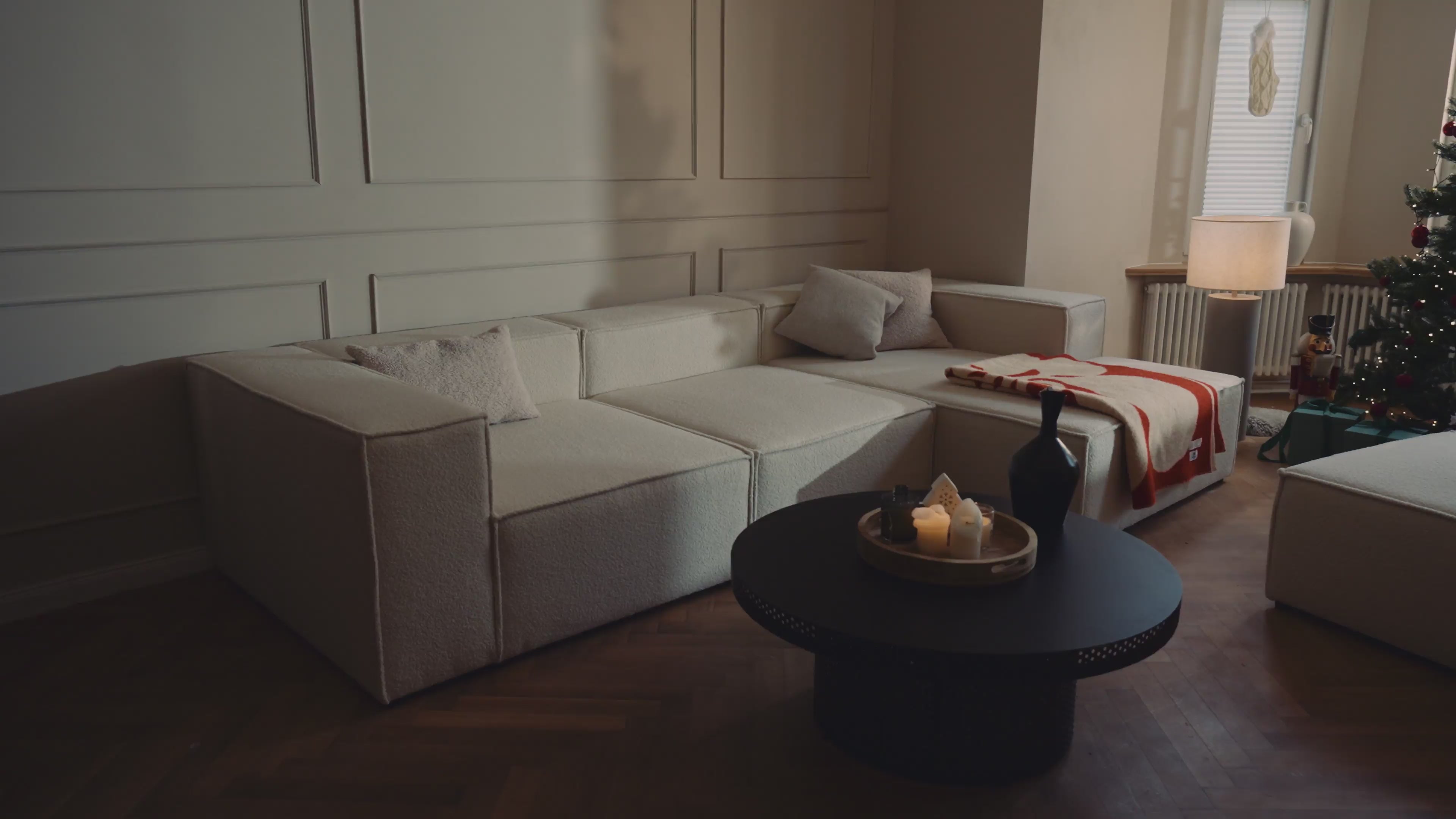 Der hochwertig verarbeitete Bouclé-Stoff mit seiner charakteristisch texturierten Oberfläche verleiht dem Sofa eine wohnliche Wärme und spürbare Tiefe. Das reduzierte Design schafft Raum zum Atmen, während die voluminösen Polster zum entspannten Verweilen einladen – sei es allein mit einem Buch oder gemeinsam mit Gästen.