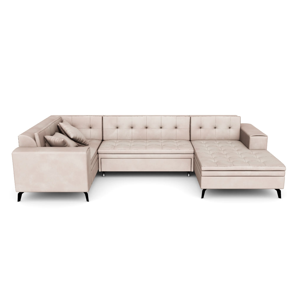 Das stylische U-förmige Design und die großzügige Liegefläche unseres Sofas Neola machen es zum Highlight Ihres Wohnzimmers. Es kann leicht in ein Schlafsofa umgewandelt werden, bietet Platz für Gäste mit einer zusätzlichen Liegefläche von bis zu 275 x 120 cm. Mit Maßen von 340 x 180 x 93 cm ist Neola ideal für große Räume. Der komfortable Sitz besteht aus langlebiger Wellfeder und flexiblem T30-Schaum, um Verspannungen und Rückenschmerzen vorzubeugen.